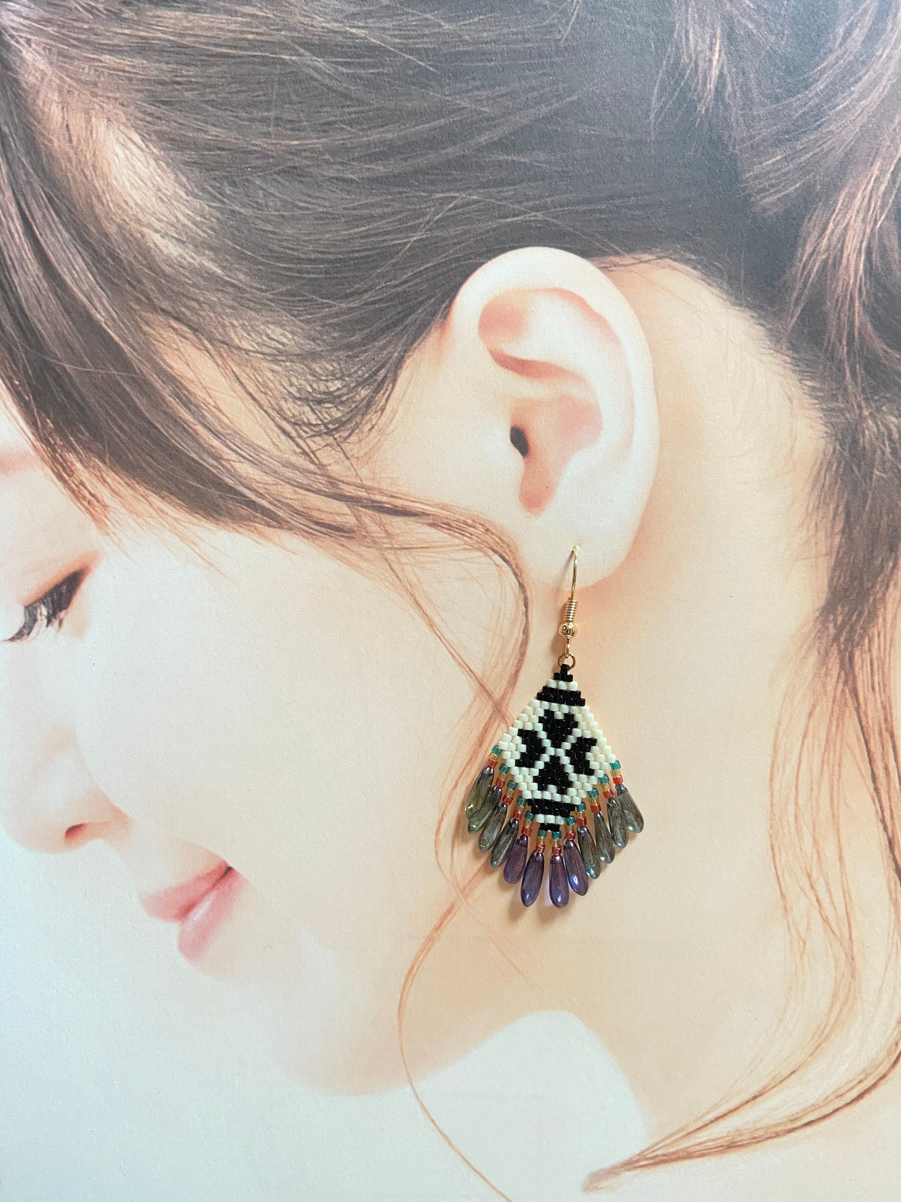 ネイティブフリンジピアス E133 ビーズステッチ