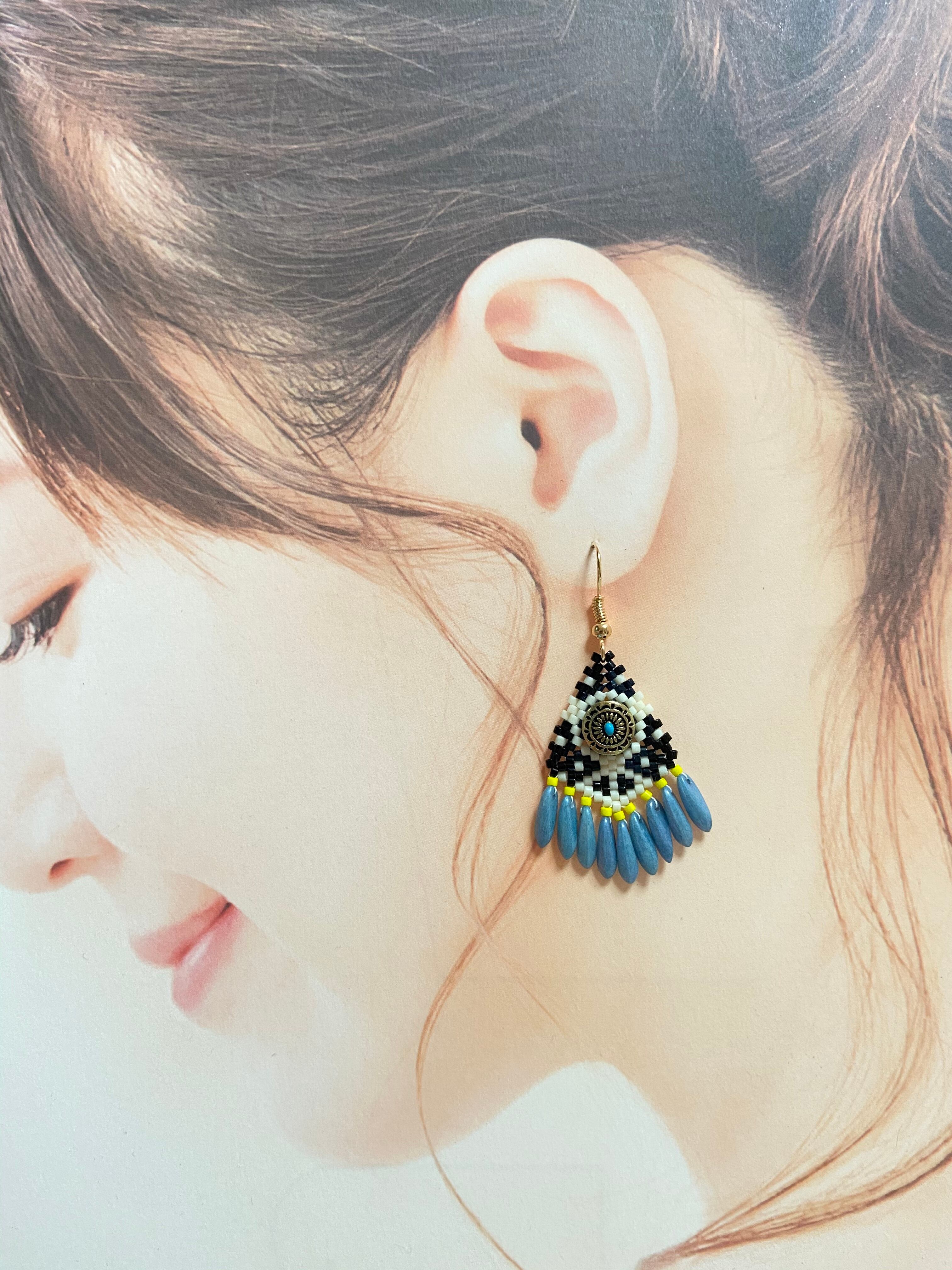 ターコイズネイティブピアス E141 ビーズステッチ