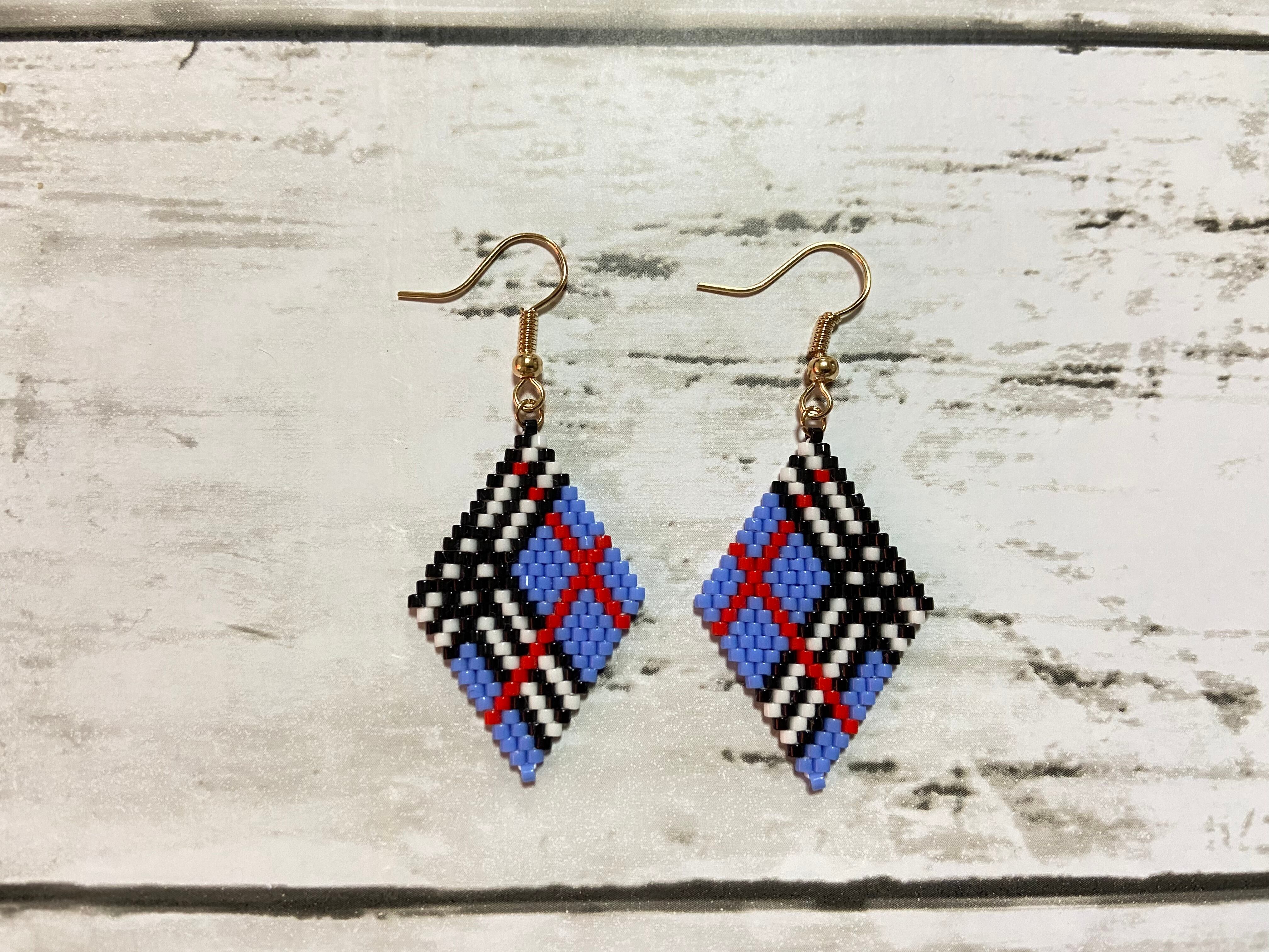 チェック柄ピアス E159 ビーズステッチ