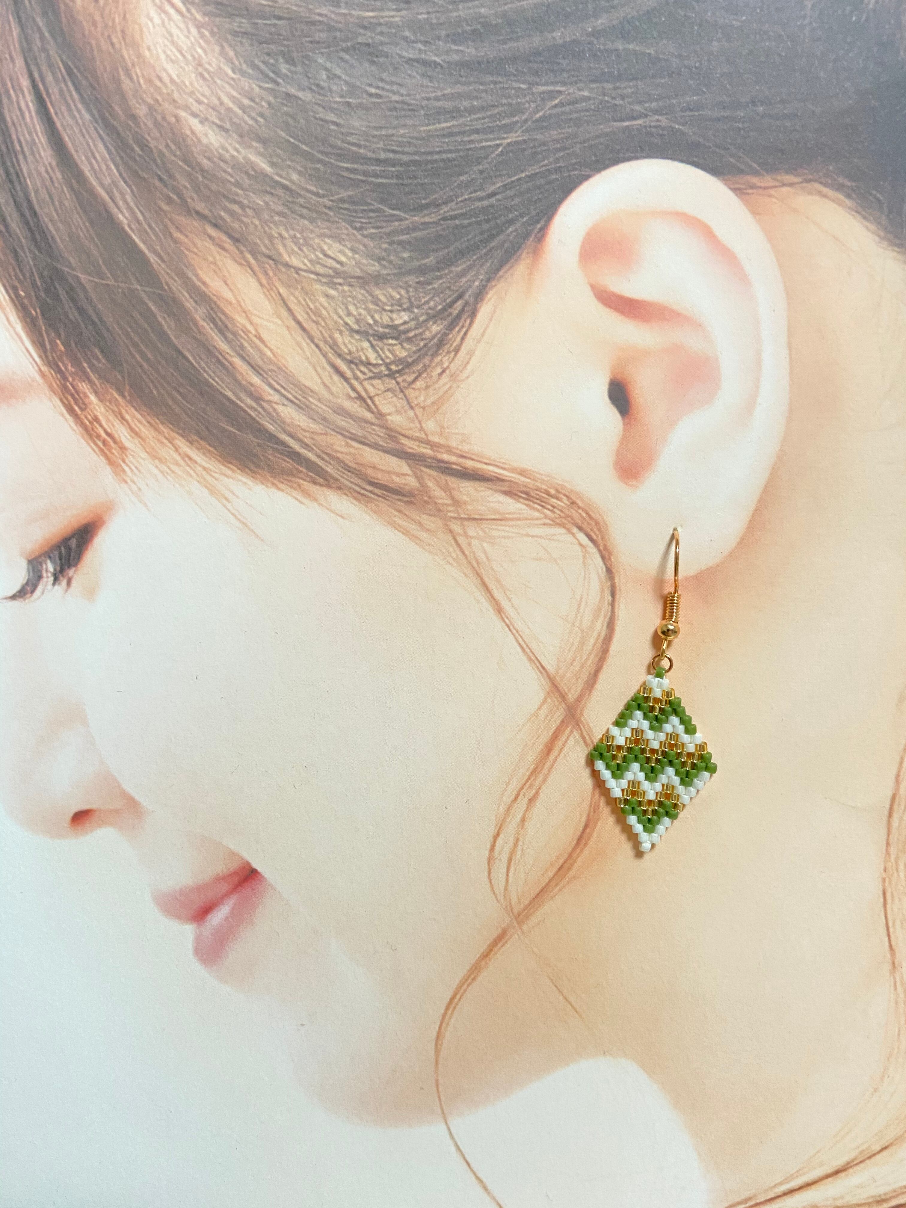 ジグザグ柄ピアス E172 ビーズステッチ