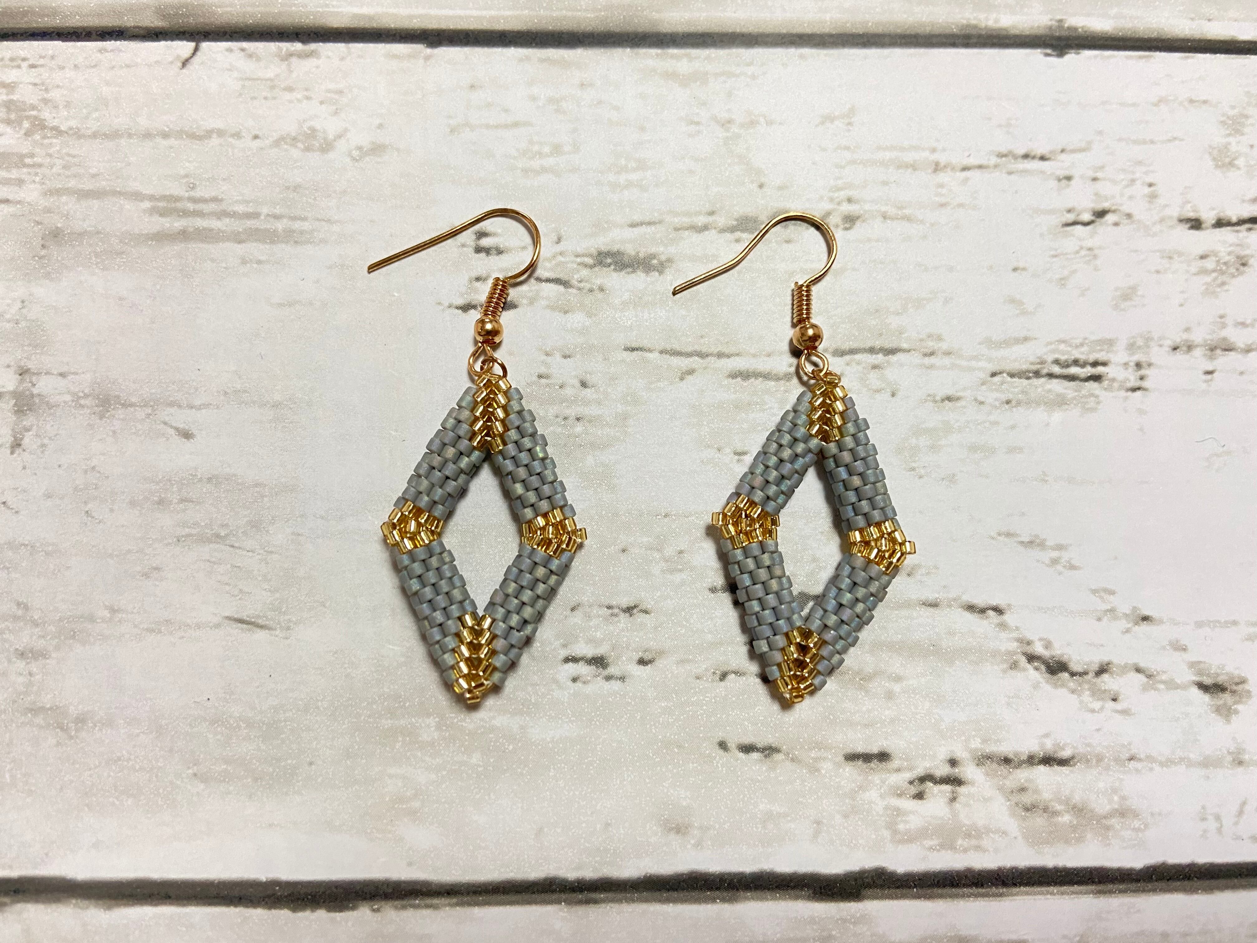 ひし形ピアス E204 ビーズステッチ