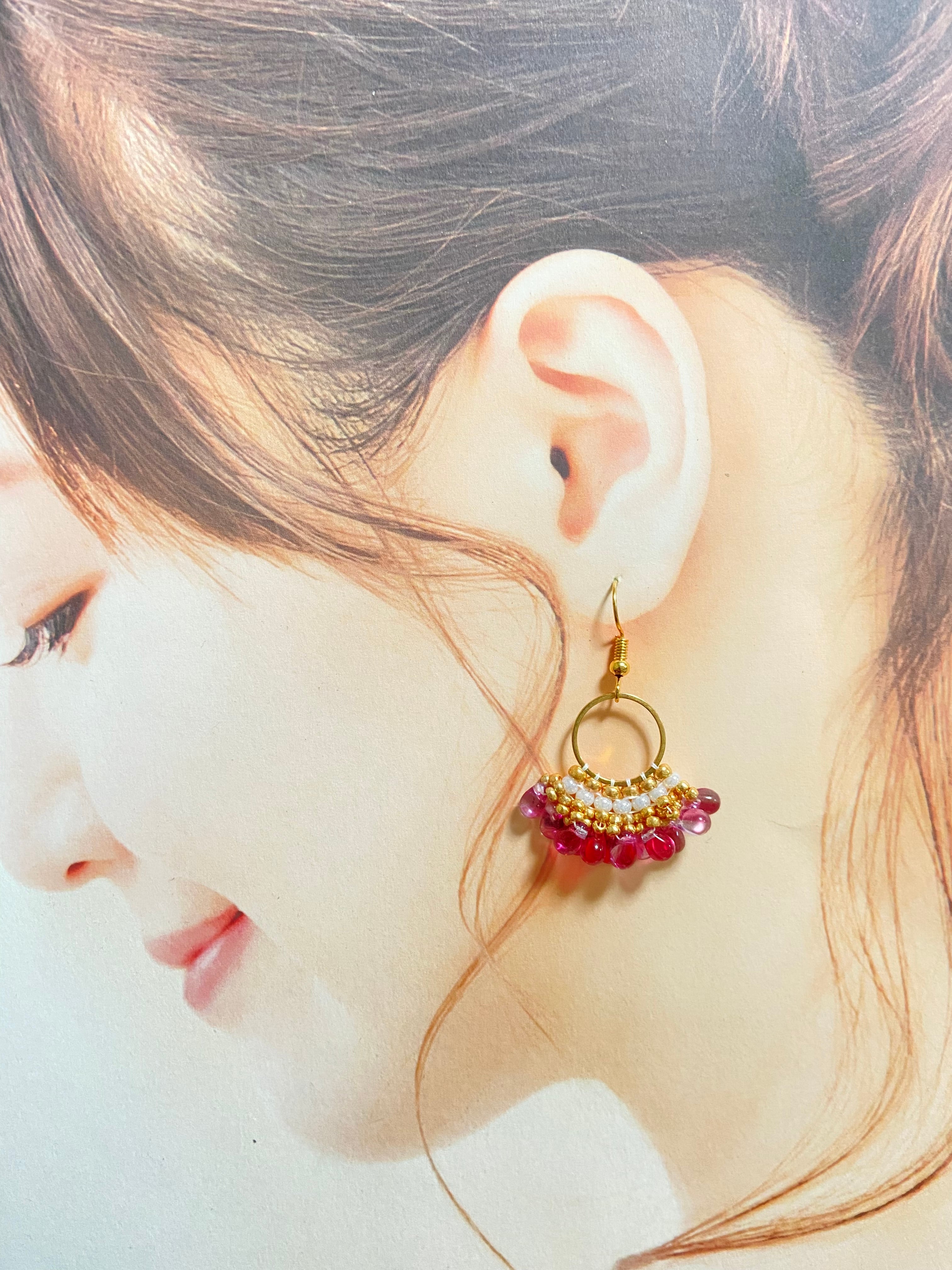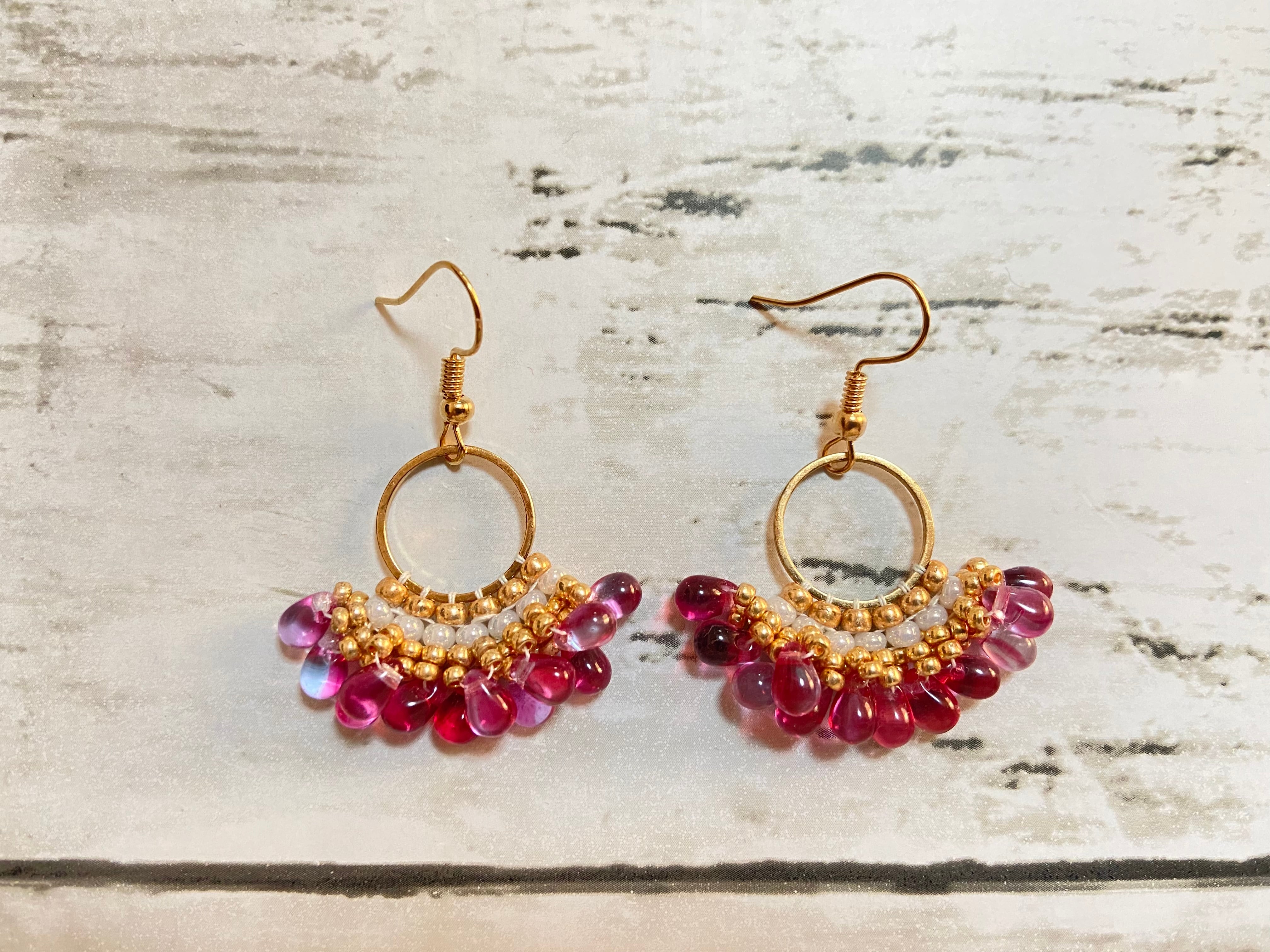 フープドロップピアス E253 ビーズステッチ