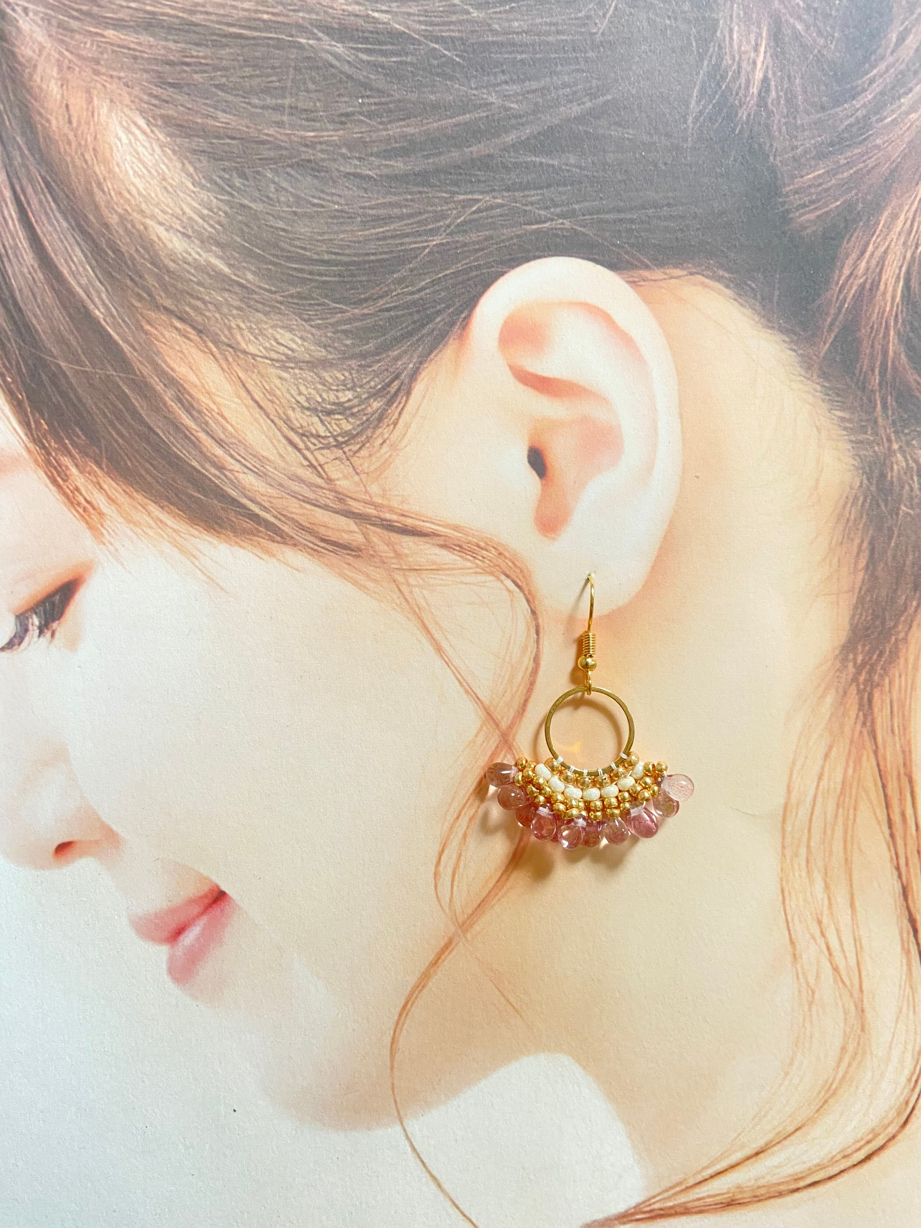 フープドロップピアス E254 ビーズステッチ