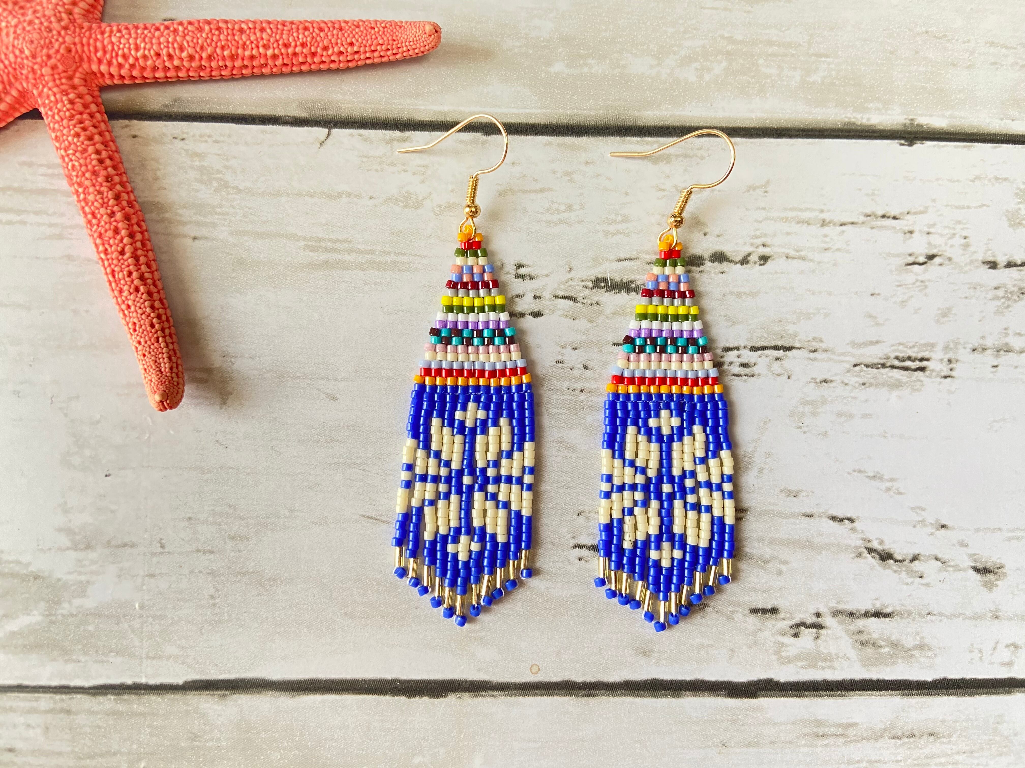カラフルフリンジピアス E297 ビーズステッチ