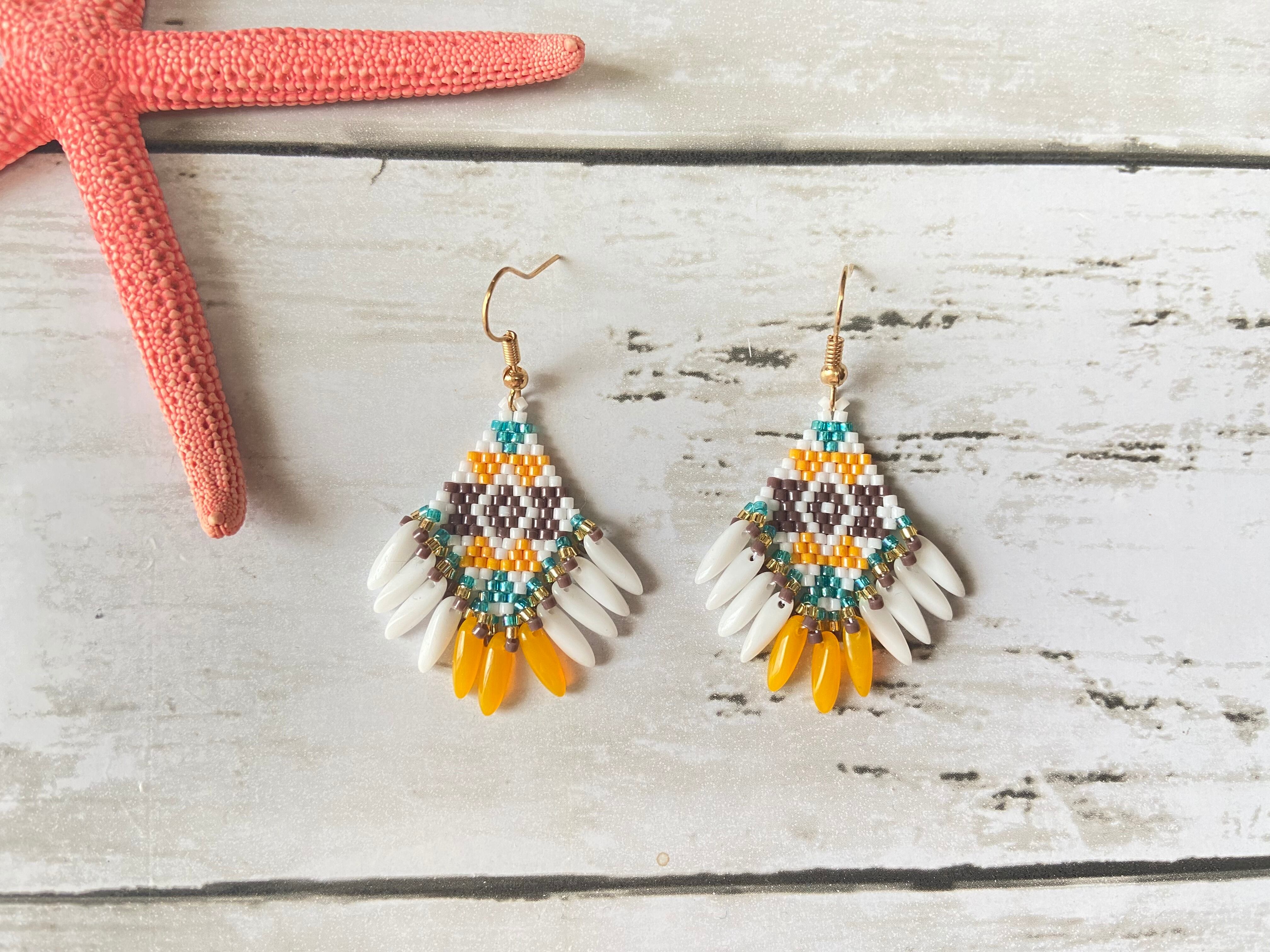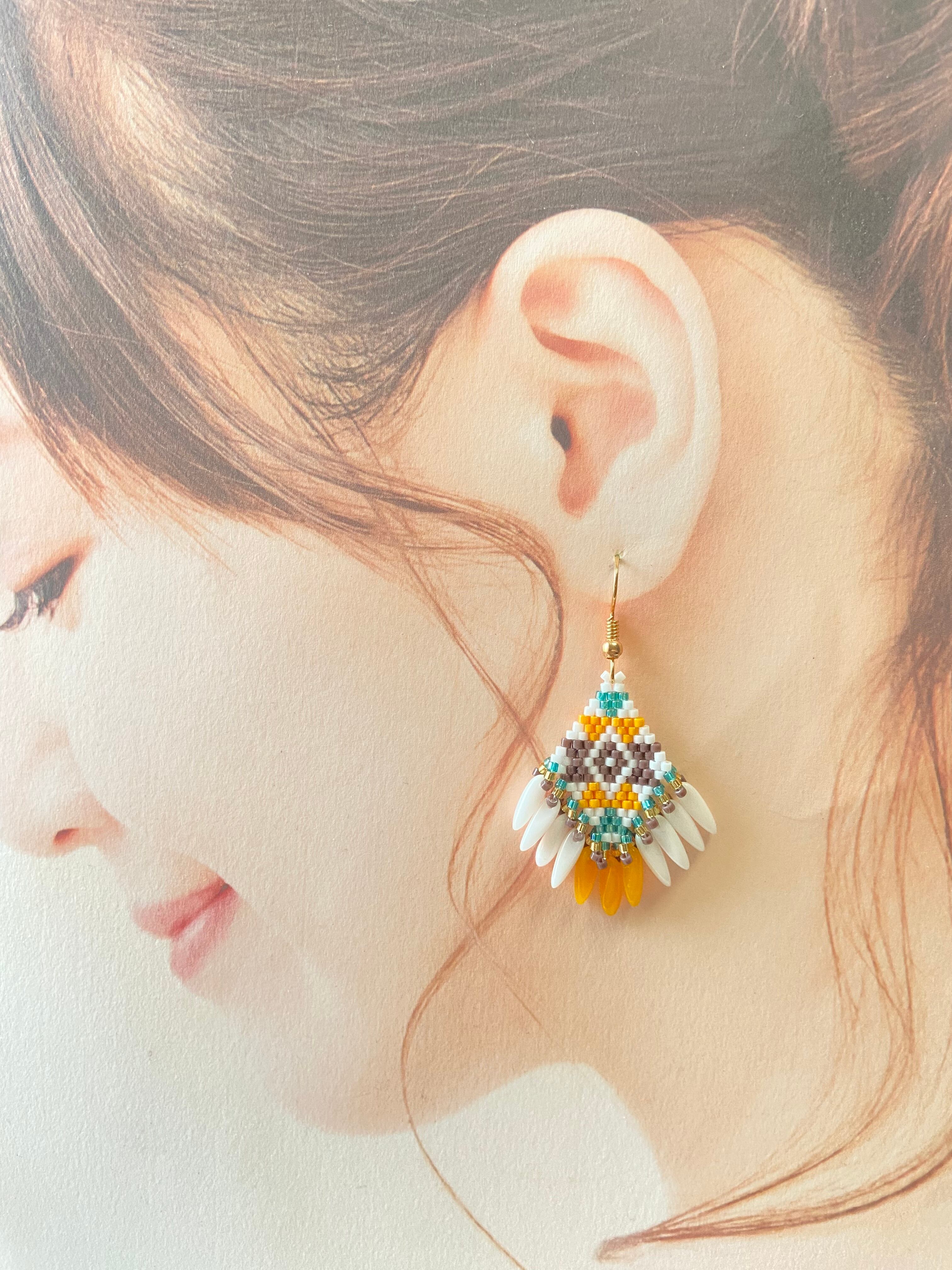 ネイティブフリンジピアス E307 ビーズステッチ
