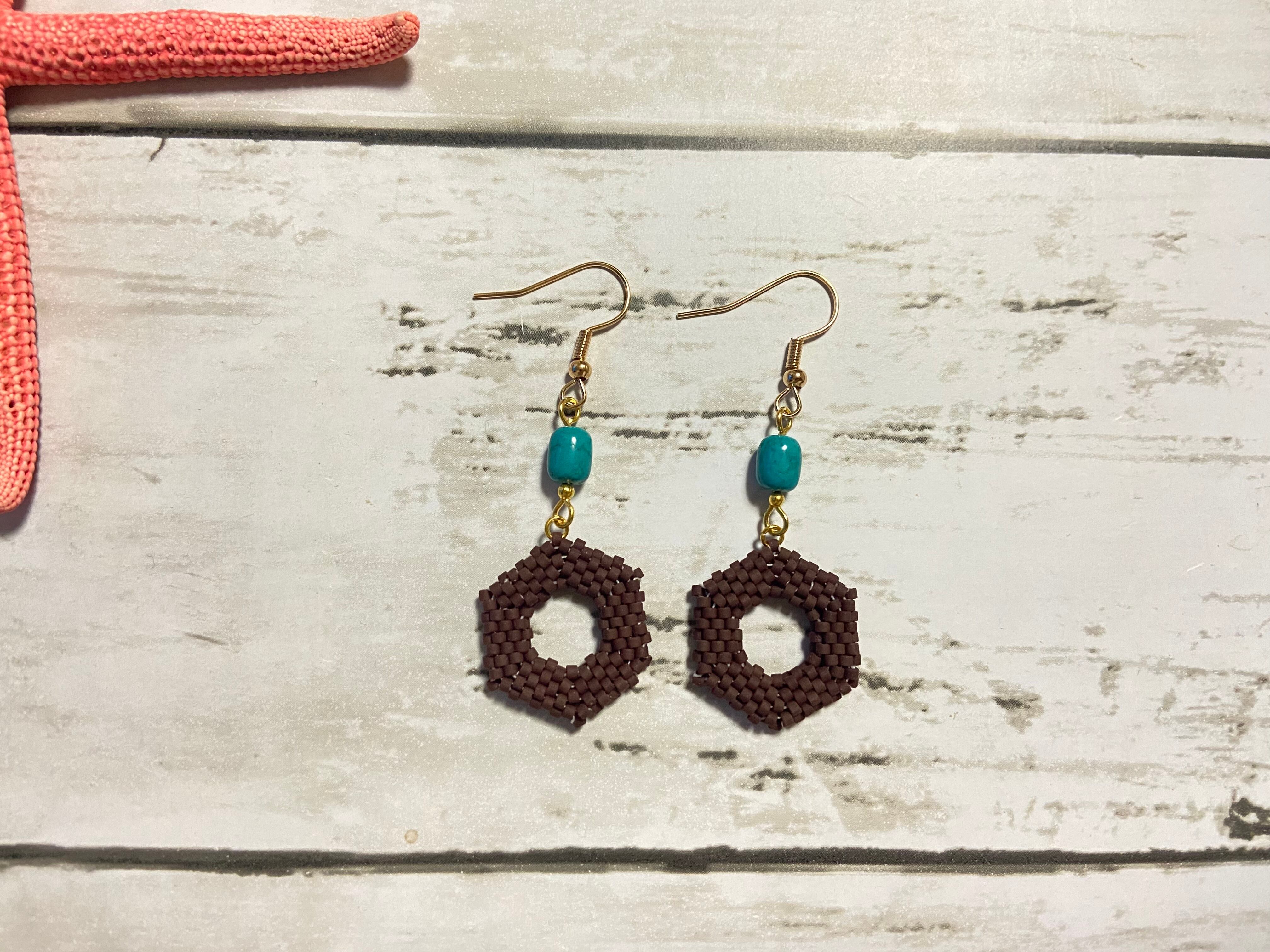 ヘキサゴン×ターコイズピアス E313 ビーズステッチ