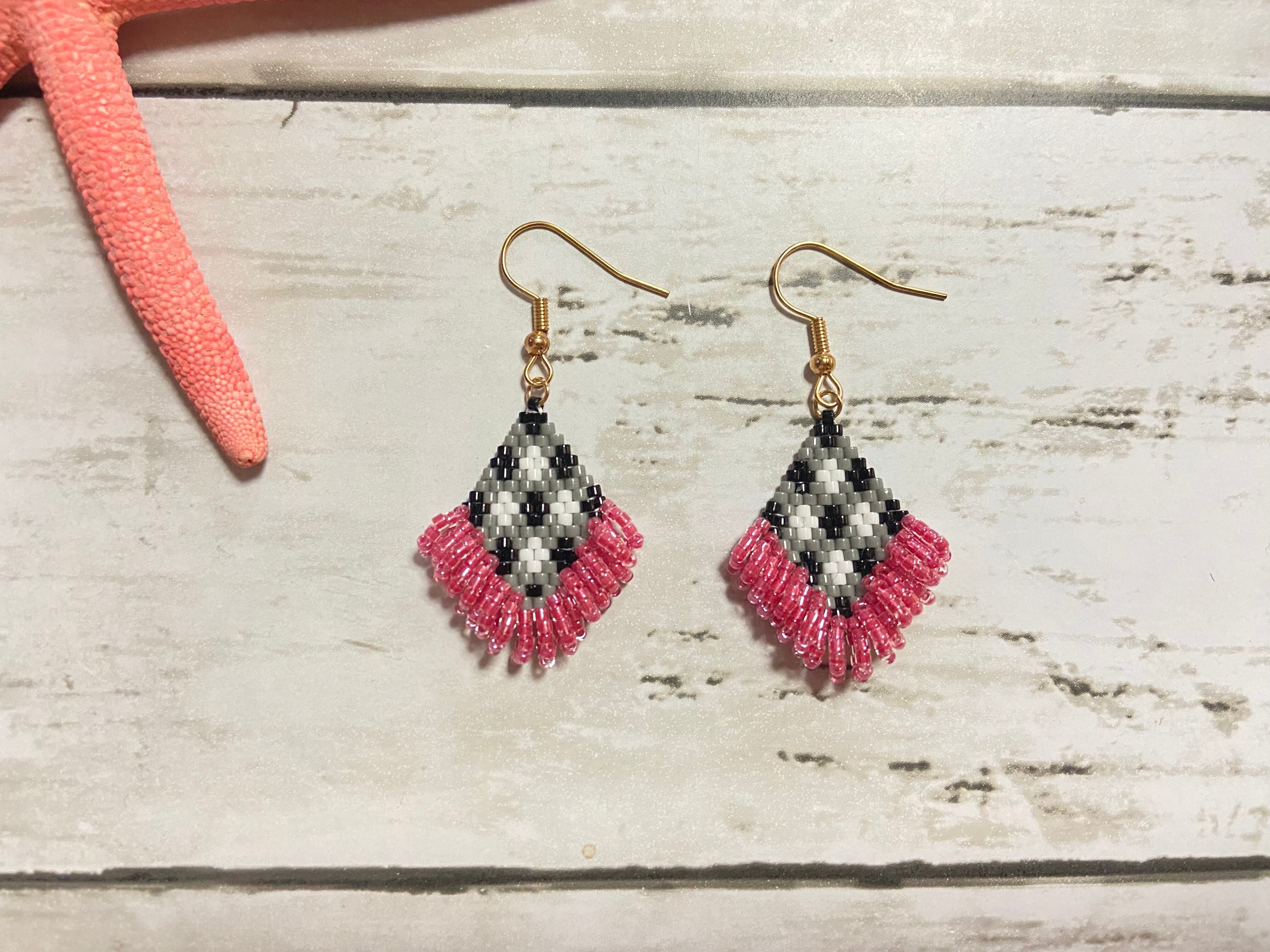 ギンガムチェックピアス E328 ビーズステッチ
