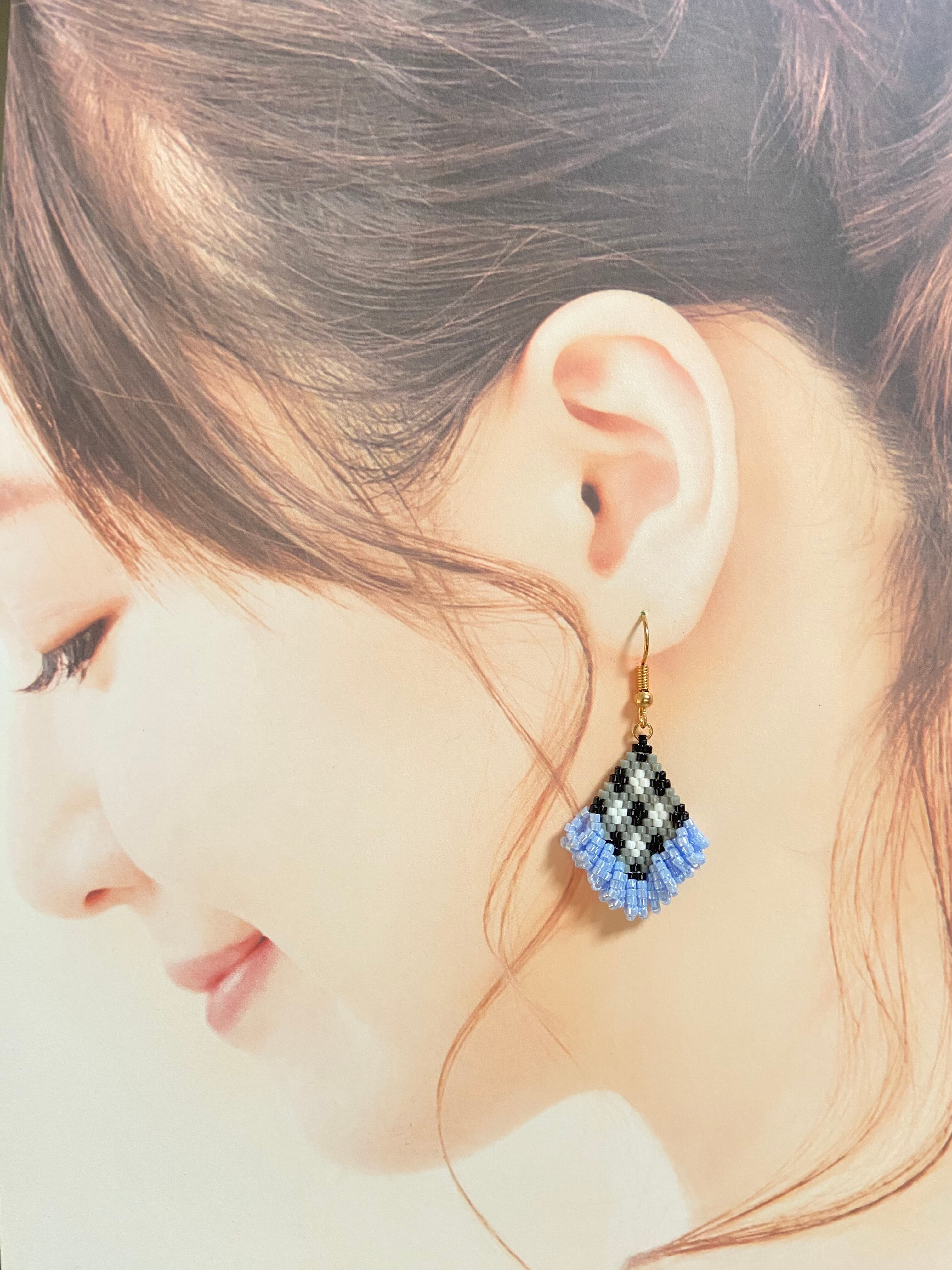 ギンガムチェックピアス E332 ビーズステッチ