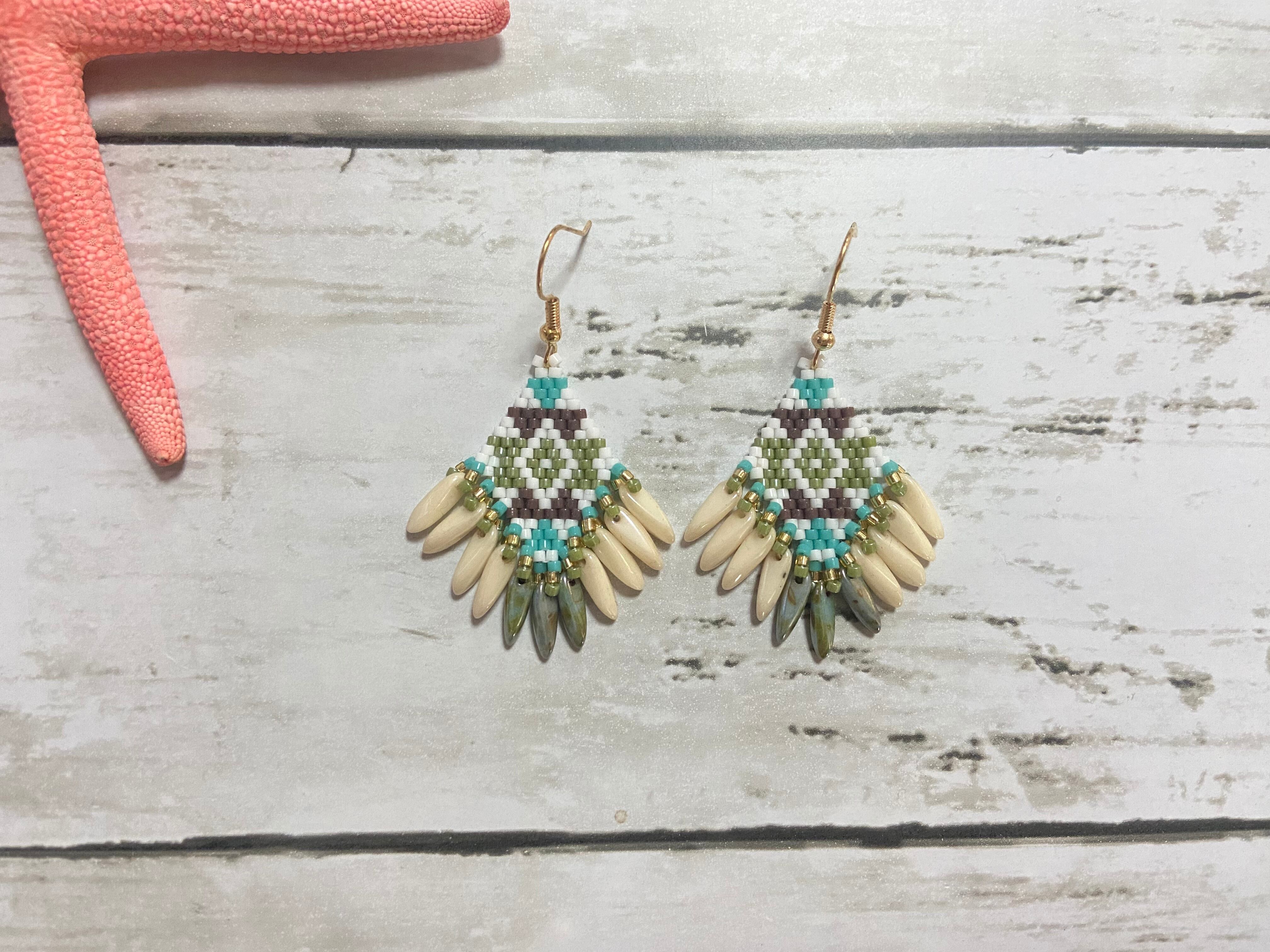 ネイティブフリンジピアス E354 ビーズステッチ