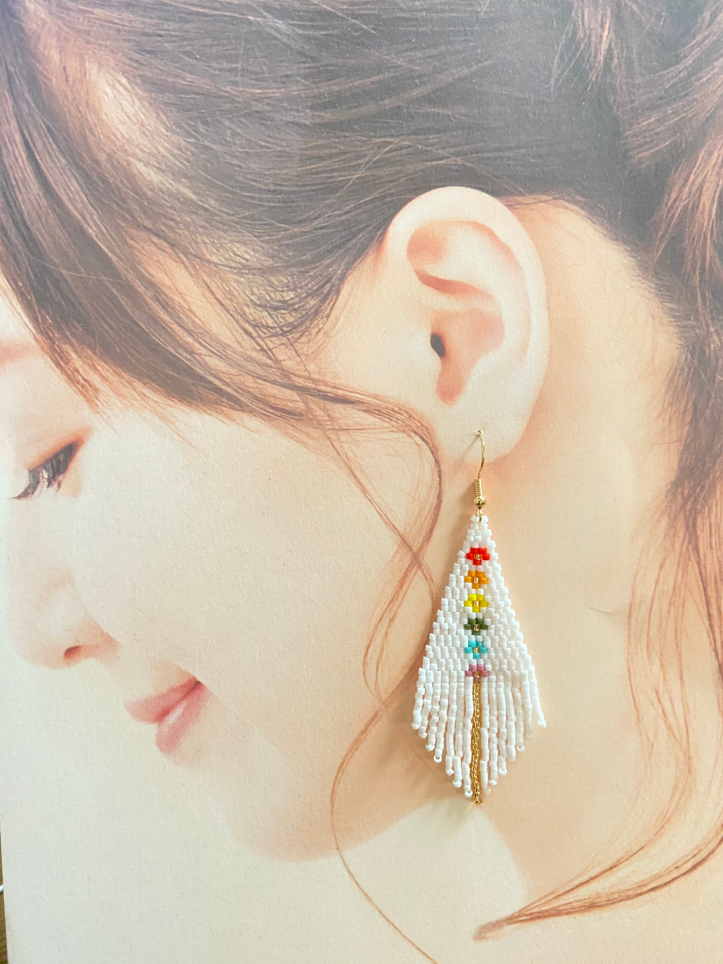 花柄フリンジピアス E359 ビーズステッチ