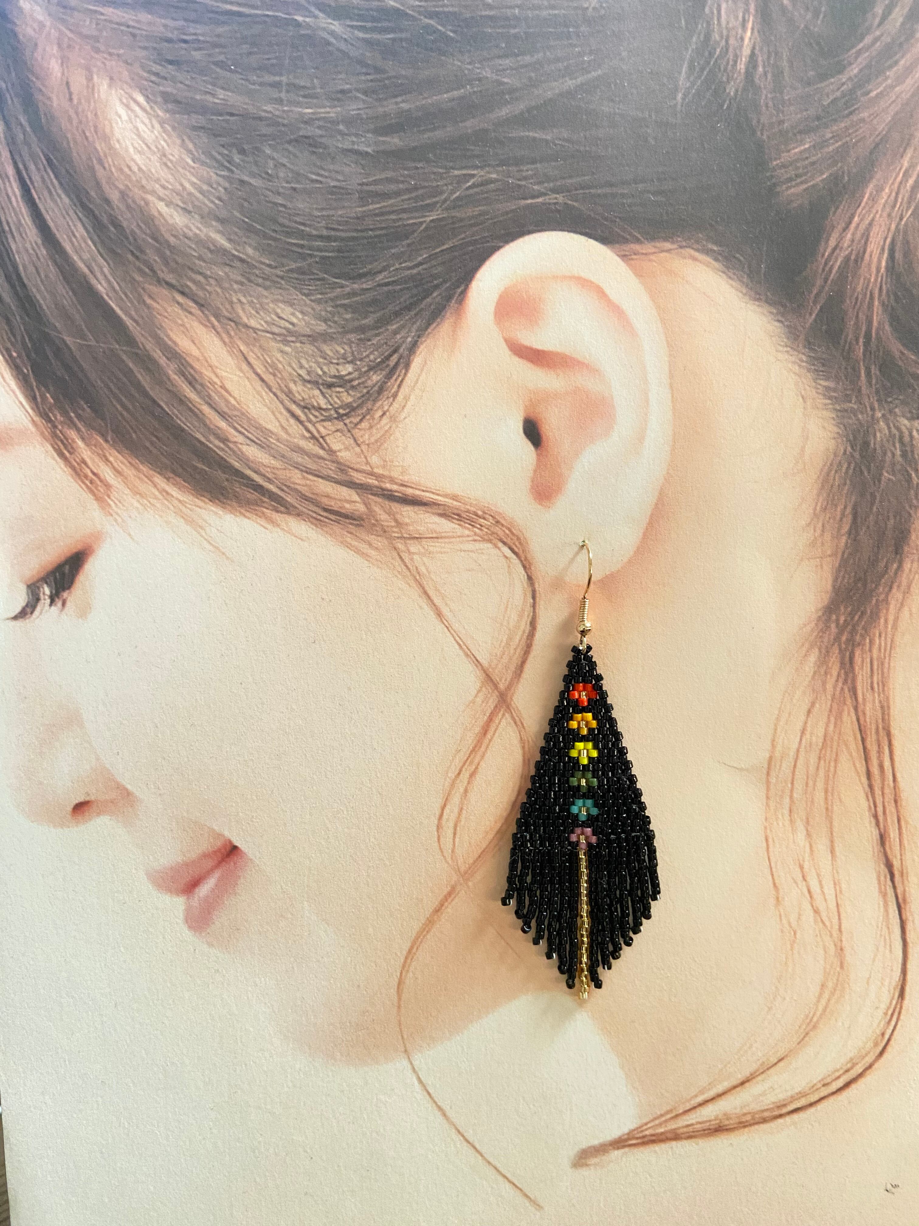 花柄フリンジピアス E360 ビーズステッチ
